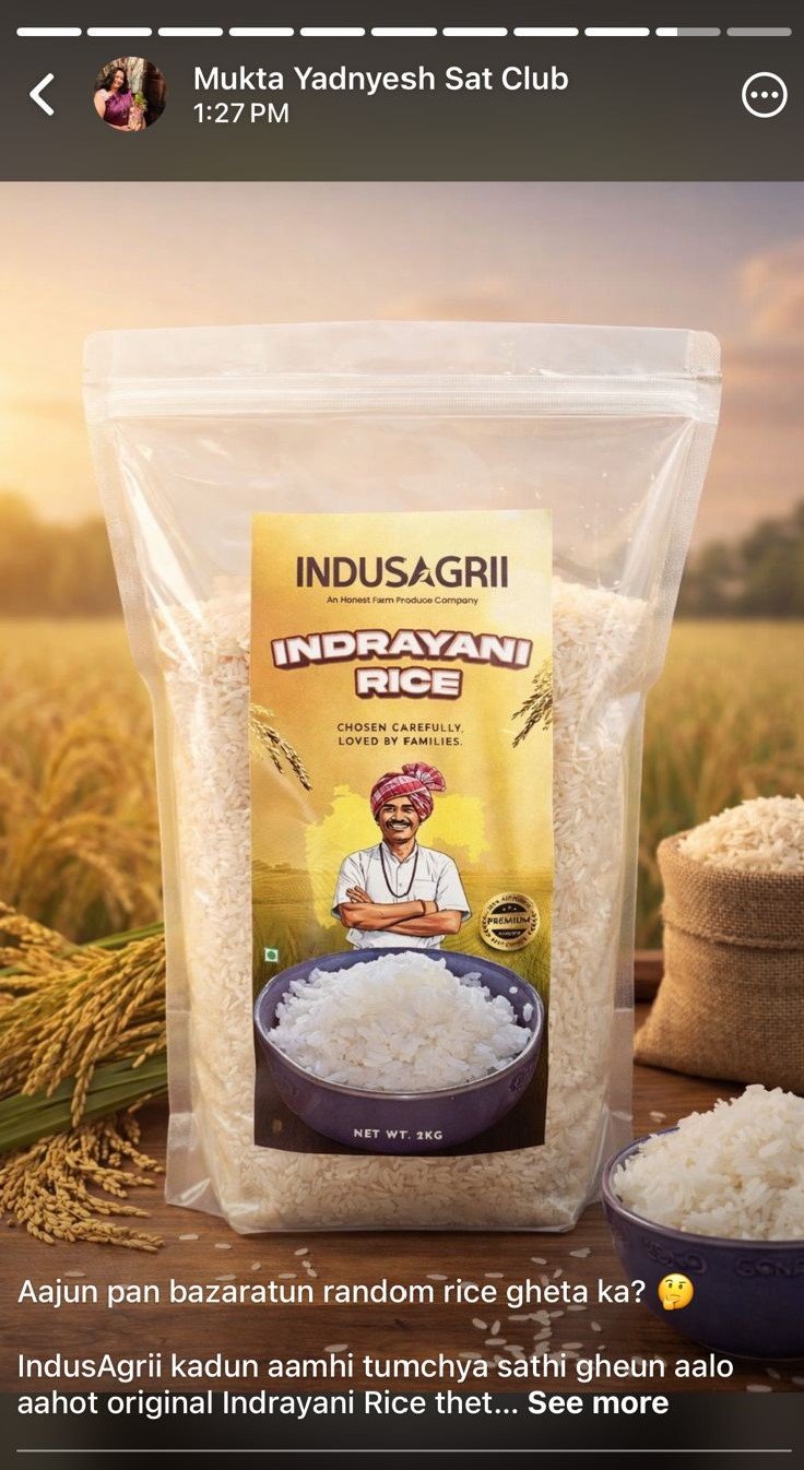 "Kharach khup chhan bhatacha sugandh pishvi ughadlyach yeto. Khup fresh ani quality rice aahe."