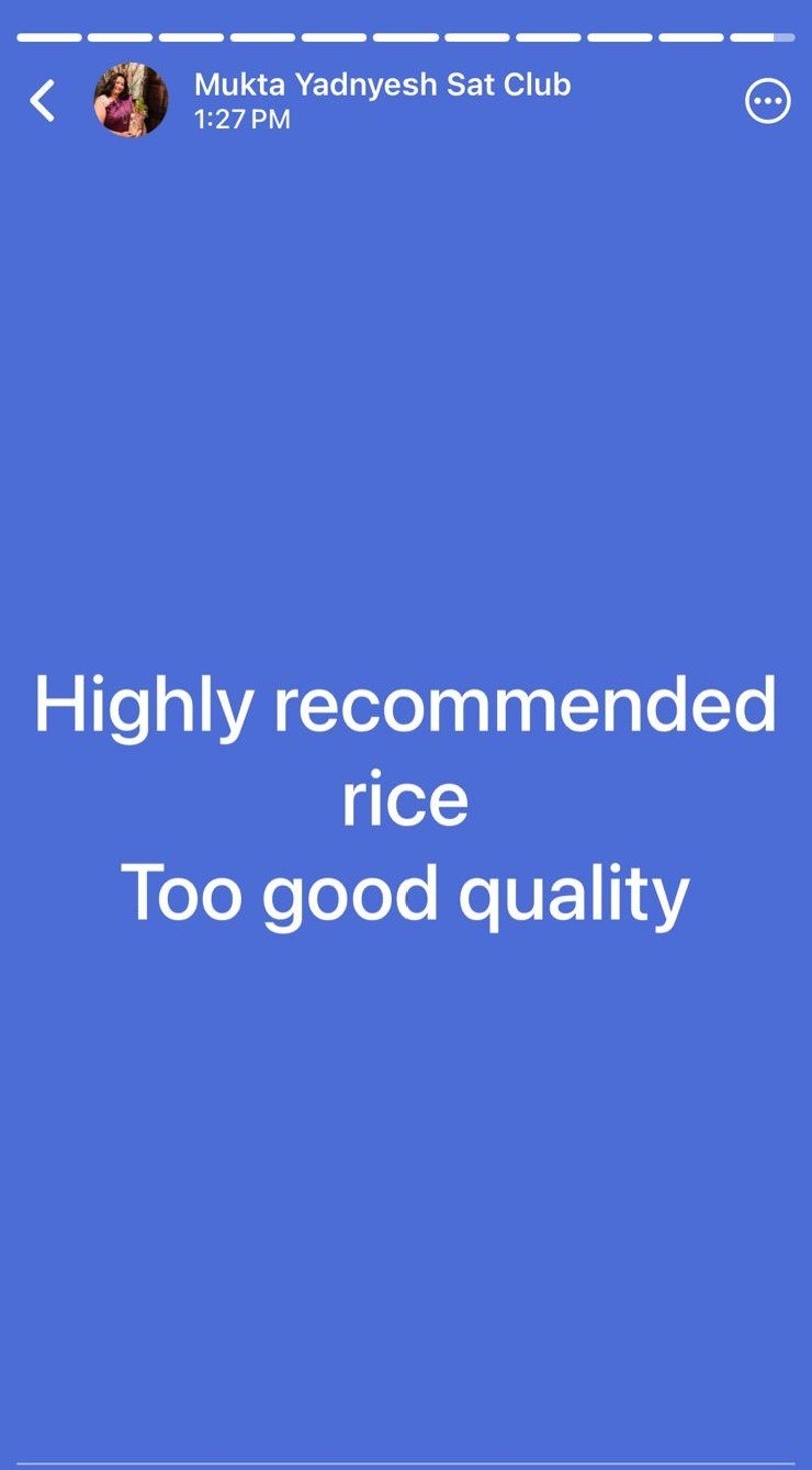 "we opened and cooked the rice on Gudi Padva day only 😊 it is very tasty and has nice flavor.. शिजताना खूप छान सुवास येतो.. Liked it👍"